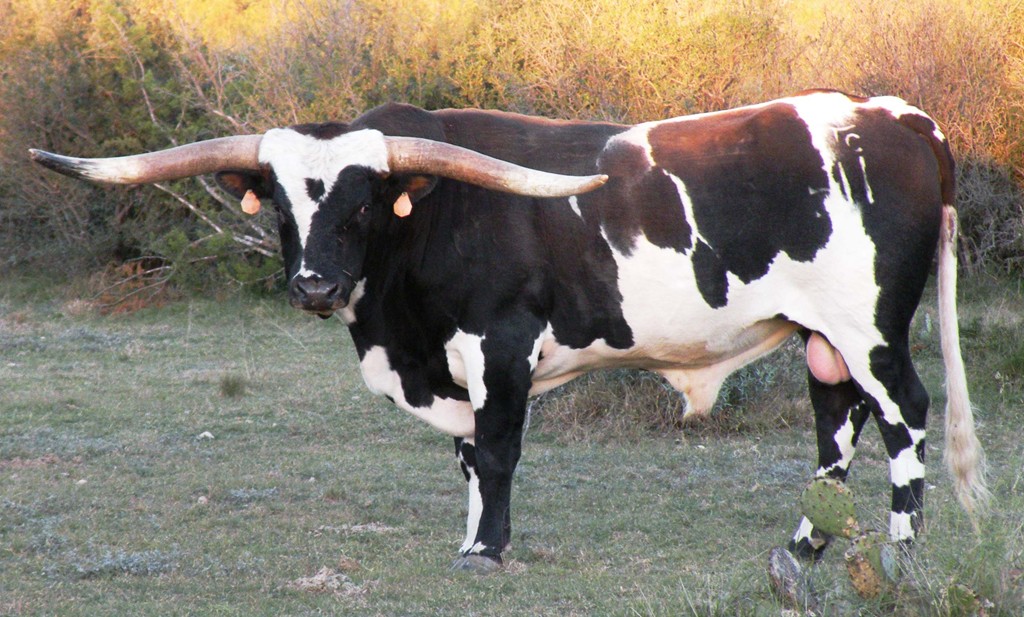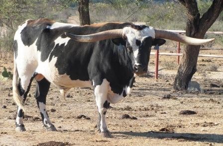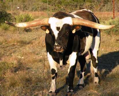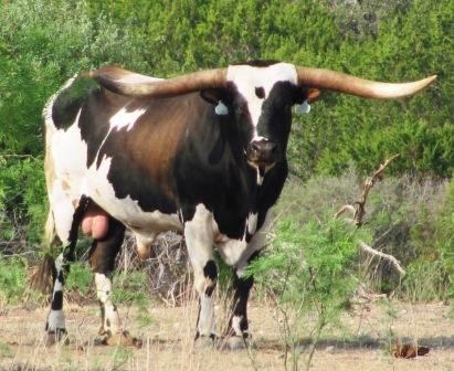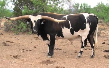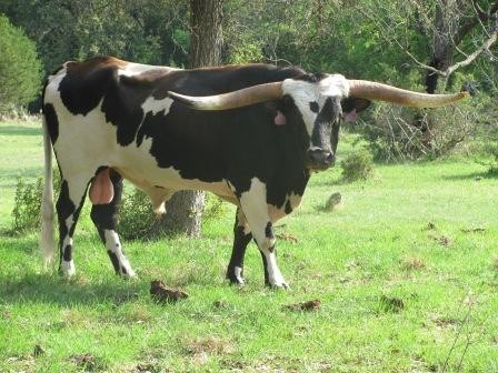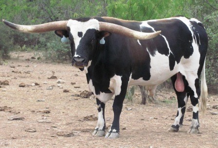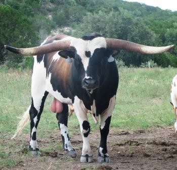 Our Senior Herd Sire. Big, impressive TG Flash son who had broken off several inches of horn prior to being to being brought to Texas. As of 3/15/2012 he measured 75" TTT. Two of his daughters placed very high in the 2011 Millennium Futurity judging.